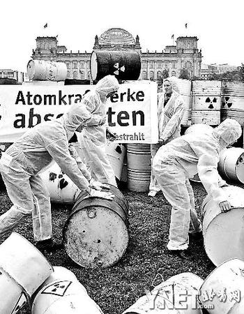 9月9日,在德國首都柏林,反核能示威者在德國國會大廈前抗議。 德國政府近日決定,推遲國內(nèi)核電站關閉時間,服役期最長延長14年。延長運行期間,核電企業(yè)需要繳納核燃料稅等并確保核電站能承受恐怖襲擊。民意調(diào)查顯示,大部分德國人贊成關閉核電站。環(huán)保組織批評默克爾順從于德國核能企業(yè)的游說。