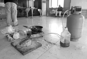 煤氣罐搬進燃氣收費大廳,還支起爐灶炒起菜,滿屋都是燒糊的刀魚味。