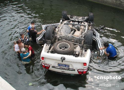 圖:汽車落水 北京奧運志愿者奮勇相救