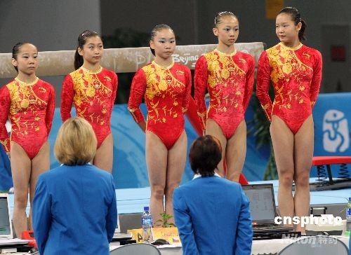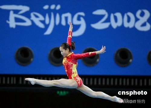 8月10日上午,北京奧運會女子體操團體資格賽在北京奧林匹克公園內(nèi)的國家體育館舉行,由世界冠軍程菲領(lǐng)銜的中國隊由平衡木比賽開始向團體冠軍沖擊。中新社發(fā) 任晨鳴 攝