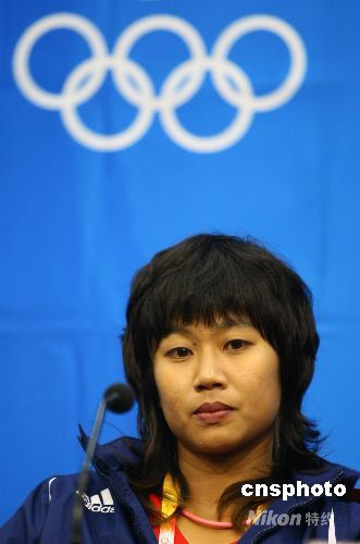 8月11日,中國女足在北京奧運會足球分賽場秦皇島奧體中心召開新聞發(fā)布會,主教練商瑞華攜隊員韓端出席。圖為韓端出席中國女足發(fā)布會并回答記者提問。 中新社發(fā) 劉新 攝