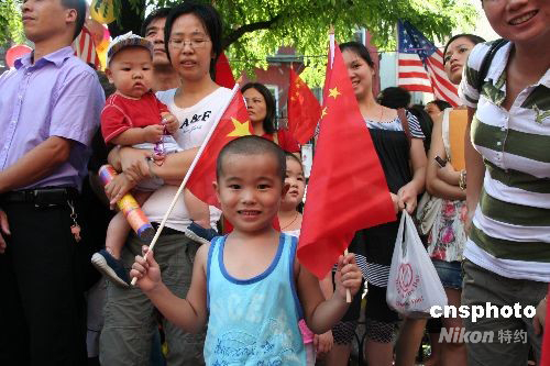 美國東部時(shí)間8月24日,紐約華人華僑舉行盛大集會,共同慶祝北京奧運(yùn)會圓滿成功。許多年紀(jì)尚幼的孩子,也手舞國旗走上街頭,歡慶的人流令紐約華埠如節(jié)日般熱鬧。