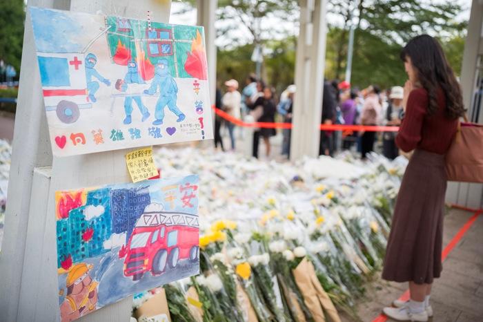 香港民眾悼念宏福苑火災(zāi)殉職消防員