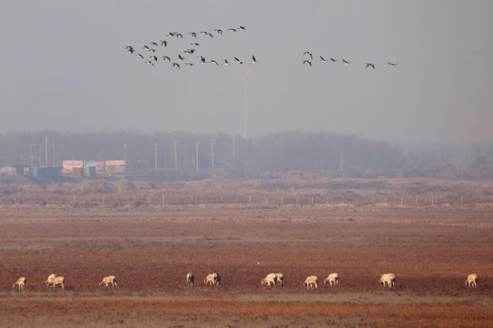 麋鹿成群“繪就”黃海之濱生態(tài)長卷
