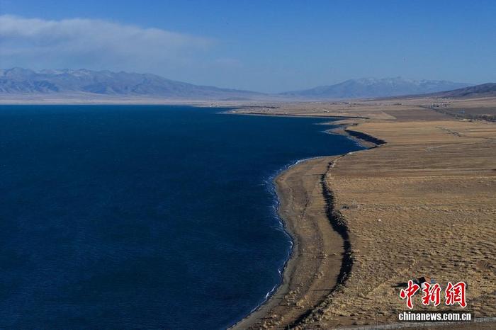 航拍冬日青海湖:湖水湛藍(lán) 萬(wàn)物靜謐