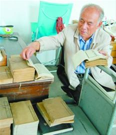 在遼寧省圖書館6樓特藏部的辦公室,年近古稀的韓錫鐸輕輕翻閱著紙頁(yè)發(fā)黃的線裝書,旁邊的推書車上,整齊地?cái)[放著一摞摞古籍——