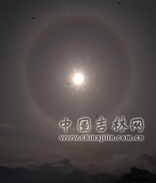 “日暈”多出現(xiàn)在春夏季節(jié)。長白山在深秋出現(xiàn)日暈,更屬難得一見。日暈常常是天氣變化的一種前兆,日暈出現(xiàn)之后,一般都要下雨。10月17日,長白山上是大雪,山下北坡的二道白河、西坡的撫松、南坡的長白及吉林省大部分地方均為大雨,證明“日暈三更雨,月暈午時(shí)風(fēng)”的諺語是準(zhǔn)確的。