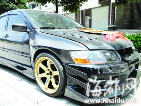 阿超指著停在他旁邊的一輛黑色的EVO跑車說,這輛車才是他的目標,可是恐怕很難跟得上,現(xiàn)在只能用一些其他車上拆下的舊件改裝。據(jù)他介紹,那輛黑色的EVO跑車屬于福州某地產(chǎn)商公子的,家里豪車無數(shù),可這位公子卻鐘情于改車玩車,在這輛EVO跑車上已投入了100多萬元,現(xiàn)在正準備將車上的坐椅等物拆除,加裝防滾架,對發(fā)動機再次升級后送往北京,參加在那里舉行的賽車。