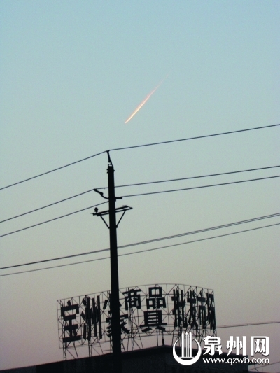 最近的一次是在去年的1月5日傍晚時(shí)分,泉州的西北方向上空突然出現(xiàn)一個(gè)拖著紅色火焰,時(shí)長(zhǎng)時(shí)短的不明飛行物。