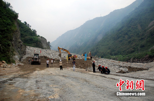 截至16日8時30分,已清理滑坡體2萬方,預(yù)計第一處塌方路段今日17時可打通便道,老虎嘴至映秀段7天左右打通便道。