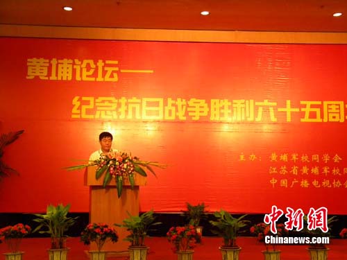 中新網(wǎng)南京8月24日電 (記者 唐娟)由黃埔軍校同學會、江蘇省黃埔軍校同學會、中國廣播電視協(xié)會聯(lián)合主辦的紀念抗日戰(zhàn)爭勝利65周年黃埔論壇,于2010年8月24日上午在南京舉行。來自海峽兩岸及海外的黃埔同學及親友,有關專家學者,相關單位領導等150余人參加了論壇。