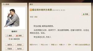 楊林川表示,需要說明的是,他在博文中建議定罪的炒房指的是炒房團(tuán),是集團(tuán)性的整個(gè)單元、整幢樓購買的行為,這種行為足以影響市場的發(fā)展。而寫博文的第一個(gè)目的是告訴大家炒房不是光榮的事!霸诰W(wǎng)上搜索炒房,跳出來最多的是‘炒房技巧研討’、‘專家教你炒房’,還有人炫耀炒房賺了多少錢。倒火車票的黃牛人人喊打,而炒房怎么卻成了光榮的事。炒火車票的黃牛只是讓我們一時(shí)回不了家,可炒房的人卻讓我們永遠(yuǎn)沒有了家!