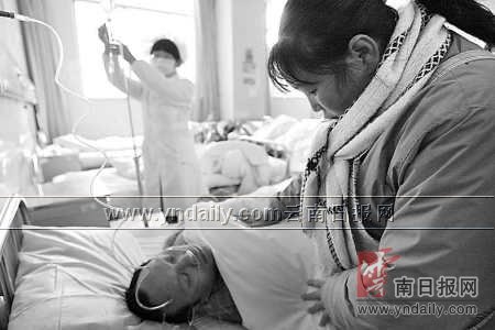 下午3時(shí),在延安醫(yī)院急診科,記者看到李賢友面色慘白,安靜地躺在病床上打著點(diǎn)滴。李賢友說他頭很疼、很暈,他的背部有明顯的紅色血印,病床旁邊的垃圾籮里有他的嘔吐物。李賢友的妻子張麗說,送到醫(yī)院后他先后吐了四五次。