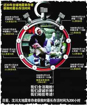 湖南的醫(yī)療隊(duì)介紹,7時(shí)許,老太太被抬上救護(hù)車緊急送往彭州醫(yī)院。從12日下午被埋開始到被解救的196小時(shí),老太太沒(méi)有吃任何東西,只是間歇地喝了點(diǎn)雨水。醫(yī)生介紹,老太太神志比較清晰,已被送到成都華西醫(yī)院治療。