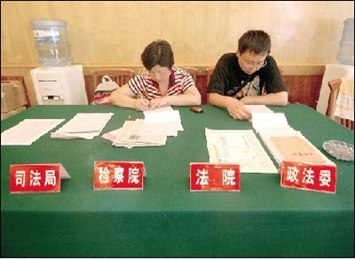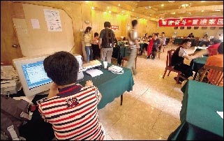 國土局是大廳最受人矚目的角落,因為那兒不僅有一臺電腦,還有唯一的一臺傳真機,這些是綿陽市國土局專門送來的。工作人員尹艷說,她也只能用電腦打一些報表,因為沒有公章,只能在上面簽名。
