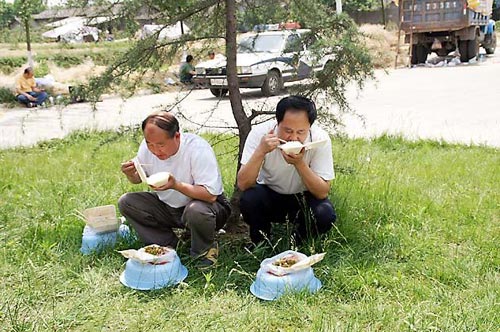 這廣場(chǎng)好大啊,全搭滿了帳篷,里面住著從災(zāi)區(qū)轉(zhuǎn)移出來(lái)的人,找了一大圈,好不容易才找到了。這是一個(gè)用竹子編織的圍席圍成的簡(jiǎn)易廁所,不斷有人進(jìn)進(jìn)出出,一個(gè)大坑上面放了幾塊木板,由于板子又薄又窄,人站在上面搖搖晃晃的。所謂茅坑拉屎臉朝外,坑周圍兩排人背對(duì)背,各自默不作聲地解決自己的事情,完事的低頭走人,后面的急忙搶上那個(gè)位置。過(guò)慣了現(xiàn)代人的生活,一下子回到這樣一種狀態(tài),真的覺(jué)得異常尷尬。