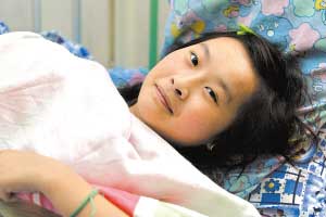 來(lái)廣州已十天有余了,白天探視時(shí)間,康潔很開(kāi)心,零食、衣服、玩具都可以讓康潔這個(gè)只有11歲的女孩眼睛興奮一陣子,她收到的公仔已經(jīng)擺滿了病房里的三張病床。