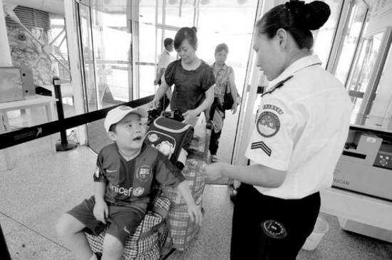 據(jù)統(tǒng)計(jì),截至當(dāng)日15時,沒有出現(xiàn)因二次安檢造成乘客耽誤航班的情況。另外,在進(jìn)入隔離區(qū)前進(jìn)行第二次安檢時,機(jī)場還增加安檢通道,盡量減少旅客的等待時間。對于可疑人員,除了正常的安檢外,還要進(jìn)行脫鞋等環(huán)節(jié)的檢查。