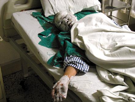 爆炸發(fā)生在昨日早上8時20分。據(jù)12歲的傷者盧彩連回憶,當時她正在插引線,看到廠里的何師傅拿著的一枚爆竹下面著火了,她趕緊就往外跑,剛跑到門口爆竹就爆炸了。三聲巨響,巨大的沖擊波將廠房的玻璃化成了碎片,五間磚房構(gòu)成的爆竹廠在瞬間坍塌,爆竹廠上方形成了宛如蘑菇云狀的滾滾濃煙,方圓60平方米的地方變成了一片廢墟,盧彩連也被氣流拋出了幾米開外!拔腋苫畹哪情g房有30多枚已經(jīng)插好引線的爆竹,在另外的房間里還有幾百枚爆竹和近50斤火藥,爆炸后,我掙扎著起來,立刻感到臉上、腳上到處都是灼傷的疼痛!北R彩連告訴記者。