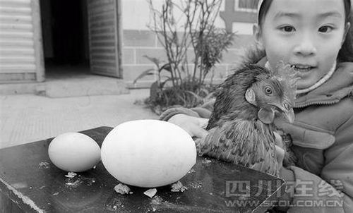 12日下午4點(diǎn)多,邛崍固驛鎮(zhèn)柏林村17組的孫偉群家中的雞舍中,一只母雞發(fā)出了“咕咕”聲。在經(jīng)歷了4天難產(chǎn)的痛苦后,這位“英雄母親”終于產(chǎn)下了一枚足有普通雞蛋的4倍大、重達(dá)210克的巨蛋。男主人張先生說(shuō),他想為這枚雞蛋申請(qǐng)吉尼斯世界紀(jì)錄。