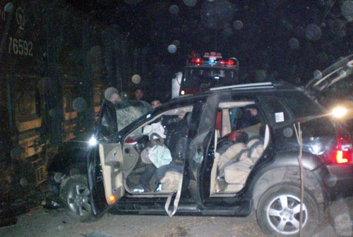 1月19日凌晨,河南漯河市區(qū)五一路與南環(huán)交叉口處發(fā)生了一起汽車與火車相撞的慘劇:一名醉酒司機駕著一輛小汽車迎頭撞上了一輛正從東向西急速行駛的火車車輪上。由于慣性,小轎車在發(fā)生碰撞后又被彈了回來,火車被迫停下。汽車上一名駕駛員被困變形車體內(nèi)血肉模糊、生命垂在旦夕。緊急時刻,駐地消防特勤官兵迅速趕到現(xiàn)場,經(jīng)過10余分鐘的營救,受傷駕駛員被成功救出。