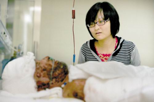 前幾天,在南京打工的父親重度燒傷,南京醫(yī)院給她打來電話,說她父親病危。她以為是騷擾電話,晚三天才趕到南京,從幾千里外,將已燒得不成人樣的父親運(yùn)回故鄉(xiāng),送到吉林省武警總隊(duì)醫(yī)院。如今,為了給父親籌集醫(yī)藥費(fèi),20歲的她又踏上打工路。
