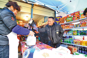 在這個市場里,幾乎所有的年貨都能買到:糖果、瓜子、蔬菜、水果、鞭炮、煙酒……連網(wǎng)吧和復(fù)印店,都能在市場里找到。