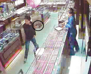 “這人我有印象,他以前來過店里。”反復看了幾遍監(jiān)控錄像后,店長鄭小姐突然說。鄭小姐說,這名黑衣男子去年臘月底曾到過店內(nèi),當時他穿的是一身運動裝,同來的還有另一名青年男子,兩人進店后看了兩三個小時,詢問了上10種珠寶首飾的價格,但什么都沒買,她和另一名店員還曾報怨過,所以印象較深。