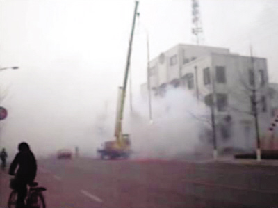 有網(wǎng)友稱,這是湖南省瀏陽市某機關(guān)單位門口燃放鞭炮的景象。短片中,大吊車用起重臂掛起兩串鞭炮,高約10米。鞭炮燃放時產(chǎn)生的濃煙將路面遮蓋,能見度很低,一些過往的車輛不得不將霧燈打開。