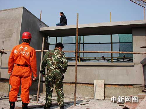事發(fā)現(xiàn)場在南寧民族大道瑯東汽車站旁的某工地旁,救援人員趕到時,只見一名30歲左右的女子趴在11層高樓的頂部上大聲哭喊,揚言如果施工方不支付丈夫的醫(yī)藥費2萬元就當場跳樓自殺,情緒非常激動。
