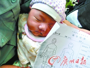 永康的父親叫劉澤,母親叫莫麗。1月7日下午3時32分,莫麗在番禺區(qū)人民醫(yī)院誕下了雙胞胎男嬰,分別叫永恒與永康。在雙胞胎出生42小時后的1月9日早晨9時,醫(yī)院里的護工抱走他們?nèi)ハ丛。劉澤回憶,大約20分鐘后,護工抱著哥哥永恒回來,卻不見弟弟永康。護工說,護士還在幫他洗澡。又過了20分鐘,永康還是沒回來,劉澤走到護士室追問。護士們坦承:永康被意外燙傷了。劉澤說,兒子腰部以下被燙得通紅,生殖器也被燙傷,“雙腿還燒出了一個個水泡”。當天中午12時許,永康轉入廣州市紅十字會醫(yī)院急救室。