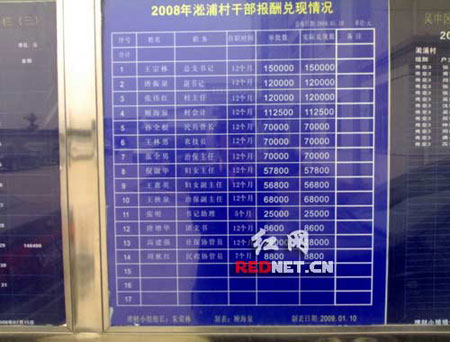 “一個村官年薪15萬,嚇得俺一跳!”16日中午,網(wǎng)友“湘水悠悠”在紅網(wǎng)論壇發(fā)帖,稱在搜狐新聞社區(qū)、天涯社區(qū)等網(wǎng)絡(luò)社區(qū)看網(wǎng)友貼出的蘇州市吳中區(qū)甪直鎮(zhèn)淞浦村村務(wù)公開的一張照片,內(nèi)容為2008年該村“村干部報酬兌現(xiàn)情況”,村支書年薪15萬,村主任12萬,月薪過萬。有網(wǎng)友感慨說,“這收入可比公務(wù)員強多了”。