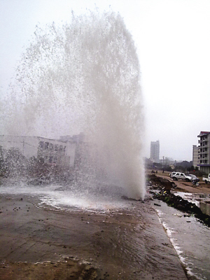 “先是聽到吱吱吱地響,馬上要到10點時,突然‘砰’的一聲后,一股水柱就沖上天了!60多歲的黃婆婆當時在現(xiàn)場,據(jù)她介紹,沖天水柱有人的大腿粗細,“起碼有十多米高!