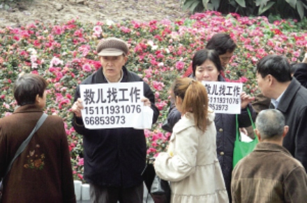 “救救我們的兒子,他才27歲!”“我和老伴身體還好,能幫你做飯、洗碗帶孩子!”昨日上午10點(diǎn)多,三峽廣場(chǎng)新世紀(jì)門(mén)口,一對(duì)老人顫顫抖抖,各舉“救兒找工作”的字牌,每逢人群圍觀和有人詢問(wèn),便急切地“推銷”自己,表示想找份工作,“我們做不動(dòng)了,還有孫子可以還賬!”