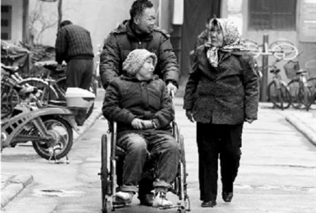 郝建平夫婦原來(lái)都是鄭州皮鞋廠的工人,后來(lái)兩人下了崗。從小患大腦炎留下后遺癥的郝建平一直是在妻子的照顧下生活,兩人還有一個(gè)可愛(ài)的女兒。但是2002年,曹青云突患腦溢血導(dǎo)致半身不遂,接連3年都沒(méi)能下床。3年間,本身都不能自理的郝建平扛起了生活重?fù)?dān)。