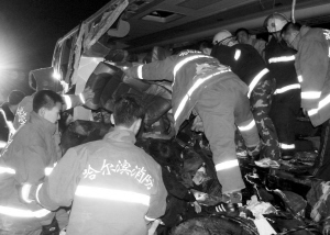 2008年11月15日16時40分,哈同公路哈爾濱依蘭段,一輛超載的金龍客車在上坡路側(cè)翻,造成11人死亡、39人受傷。