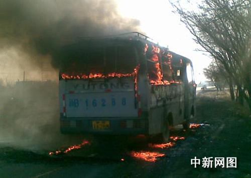 中新網(wǎng)烏魯木齊3月21日電 (汪金生 施鍵欣)3月21日上午9時(shí)26分,新疆石河子市消防特勤中隊(duì)值班室接到指揮中心調(diào)度命令,在烏伊公路石河子路段一輛車牌號(hào)為新B-16288的中巴車發(fā)生火災(zāi)。接到命令后,中隊(duì)迅速出2車10人趕赴現(xiàn)場(chǎng)。