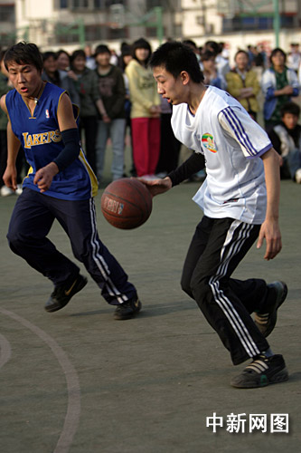 “加油,加油……” 兩邊的同學(xué)拉拉隊(duì)大聲吶喊。一場(chǎng)藏班同學(xué)與本地同學(xué)的籃球賽正在激烈競(jìng)爭(zhēng)中。