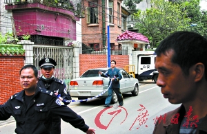 昨日中午,記者趕到現(xiàn)場(chǎng),高為5層的33號(hào)大門緊閉,院內(nèi)站滿民警,門前排了11輛警車。記者觀察發(fā)現(xiàn),距離33號(hào)不到100米就是廣州最為繁華的地帶之一——五羊新城內(nèi)的達(dá)道路,路上車輛穿梭往來(lái),周邊分布著廣州各大單位。距離33號(hào)大院的路對(duì)面,成排的老別墅被重新裝修一新,里面駐扎著數(shù)間公司,營(yíng)業(yè)范圍有廣告、律師等行業(yè),白天人流不少。