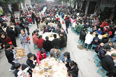 家族祭祖千人宴擺了二里長街。日前,重慶璧山八塘家族宴堪稱氣派,族人當(dāng)街聚餐。此前,董姓家族曾在網(wǎng)上邀方圓十里的族人赴宴。