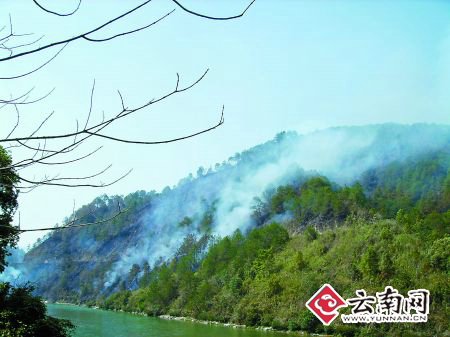 昨日下午3時58分,記者從潞西市前往盈江采訪途中,在潞盈公路50公里處看到,龍江對岸的山上燃起了大火,兩面山崖過火面積達幾百畝,燃燒的大火不時躥起幾米高的火苗,老遠就聽見樹木燃燒時發(fā)出的“噼啪”聲,空氣里都是焦煳氣味。見此情形,記者匆忙中撥打了119報警。對方告訴記者,已有人報過警了,已通知森林消防處理。
