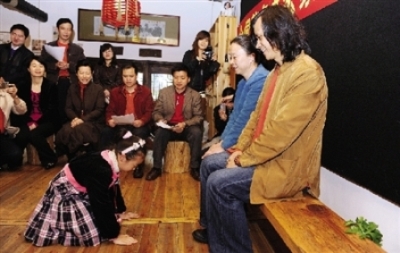 曾先生(市民):我認(rèn)為這是一種文化的回歸,一種民族自我的回歸。行跪拜之禮,不在于形,但可以通過(guò)形式對(duì)中國(guó)古代經(jīng)典文化進(jìn)行繼承。這種跪拜之禮,有人可能會(huì)說(shuō)它是糟粕,但是,是否糟粕,誰(shuí)來(lái)定論?為什么跪拜之禮就是糟粕?現(xiàn)在好多地方過(guò)年時(shí),晚輩給長(zhǎng)輩拜年也是跪著的呢。