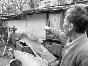 據(jù)王大爺?shù)热私榻B,他們是按1987年哈爾濱市防汛指揮部要求從太陽島搬遷至此,按當(dāng)時的搬遷要求,他們的住房問題由所屬單位也就是哈爾濱市電車公司解決。王大爺他們已在此生活了22年,此處土地為哈爾濱市電車總公司所有。2008年10月17日,哈爾濱市電車總公司通知這里居民10日內(nèi)搬出此地,可是居民們不愿離開。此后就再沒了太平日子。