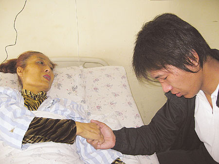其實(shí),早在2006年,在母親患病中期,兒子常津銘就從網(wǎng)上查到關(guān)于肝臟移植手術(shù)的資料,但沒想到母親的病真的發(fā)展到這一步。當(dāng)看著往日的漂亮媽媽皮膚黑黃,人也越發(fā)消瘦,兒子的心里難受極了。他安慰母親:“老媽,你放心,需要換肝我一定給你!碑(dāng)時(shí),媽媽愣住了:“兒啊,你胡說什么,媽都這么大年紀(jì)了,你以后的路還長著呢!”“不行,老媽,我能救你而不救,我會(huì)遺憾一輩子的!”