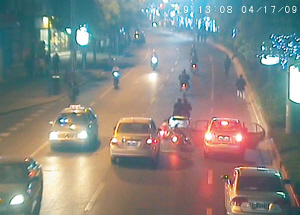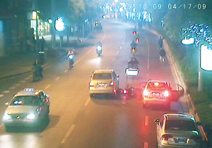 從回放的錄像中,記者清楚地看到,在非機(jī)動(dòng)車道上,違章停放的尼桑車前方幾米處,曾出現(xiàn)過(guò)一輛淺色私家車。該車剛停下不久,騎車人的身影就出現(xiàn)在了畫面中,只見(jiàn)右后側(cè)車門先打開(kāi),有個(gè)大約六七歲的長(zhǎng)發(fā)小女孩下了車。幾乎與此同時(shí),左后側(cè)車門也毫無(wú)預(yù)警地打開(kāi)了,正巧刮擦到了猝不及防的助動(dòng)車,騎車人瞬間倒地,瞬間的突發(fā)情況以致后續(xù)緊跟著的頤達(dá)車盡管慢速行駛卻也根本無(wú)法避讓,硬生生壓過(guò)騎車人。