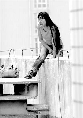 “許昌一市民打來長途電話稱,一女子在鄭州市友愛路中原商貿(mào)城中的中原商務(wù)樓頂,想跳樓自殺!弊蛉14時許,特巡警二大隊中隊長劉洪剛接到110指令后,立即帶領(lǐng)3名民警趕到現(xiàn)場。只見,一長發(fā)女子坐在樓頂?shù)膲,不停地打著電話,情緒很是激動。