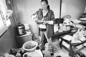李涵的丈夫工作忙,每星期回家的次數(shù)少得可憐。白天,必須自己動手洗、切、煮,彎著腰在電磁爐上燒菜,李涵說確實(shí)有點(diǎn)累。