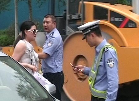 “當(dāng)時(shí)我搭乘的出租車和她的車之間隔了3輛車,等行駛到湖西路與紅旗街交會(huì)處時(shí),她的車遇到紅燈才停下來(lái)!比~警官回憶,13時(shí)15分左右,他將女子的車攔截下來(lái),再次要求女子出示駕照,但女子仍然拒絕。