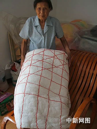 據(jù)伏老太的女兒劉桂華介紹,她老母親十六歲起就開始吸煙,至今從未停止過。七十年代起,吸帶有過濾嘴的卷煙,每天半包或一包不等,都是低檔煙。每次抽煙前,她都習(xí)慣地將香煙上的過濾嘴掐斷,存放一邊,集中一斷時(shí)間后,再將過濾嘴里的海綿一一剝下來,日積月累,年復(fù)一年,海綿聚集成幾大蛇皮袋。劉桂華說:“我們子女曾經(jīng)不讓媽媽這樣吸煙,更不讓她將海綿積累起來,可她執(zhí)意不讓并認(rèn)為里面的海綿比棉花好,丟掉可惜,萬(wàn)萬(wàn)想不到她用這些海綿彈成了一床被絮。”