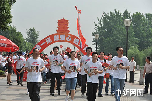 當日,湖北籍奧運冠軍楊威、高崚的帶領下,近300名武漢市民組成“漢口”、“漢陽”、“武昌”三個愛心方陣,手持“捐一元,獻愛心送營養(yǎng)”的小紅旗,身著統(tǒng)一的獻愛心T恤,沿著漢口江灘跑步前進,沿途不斷地向周邊行人和游客發(fā)放愛心貼紙,呼吁更多的武漢市民參與到該項活動中來。